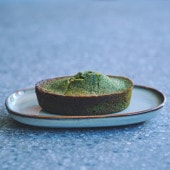 キョウナンシェの生地には、京都府最大の茶産地である和束町で栽培された、貴重な高級抹茶を練り込みました。茶葉の美しい色が飛んでしまわないよう、様々な工夫を重ねてていねいに焼いています。半分に割ると立ち上るさわやかな香り、あざやかな抹茶色をお楽しみください。